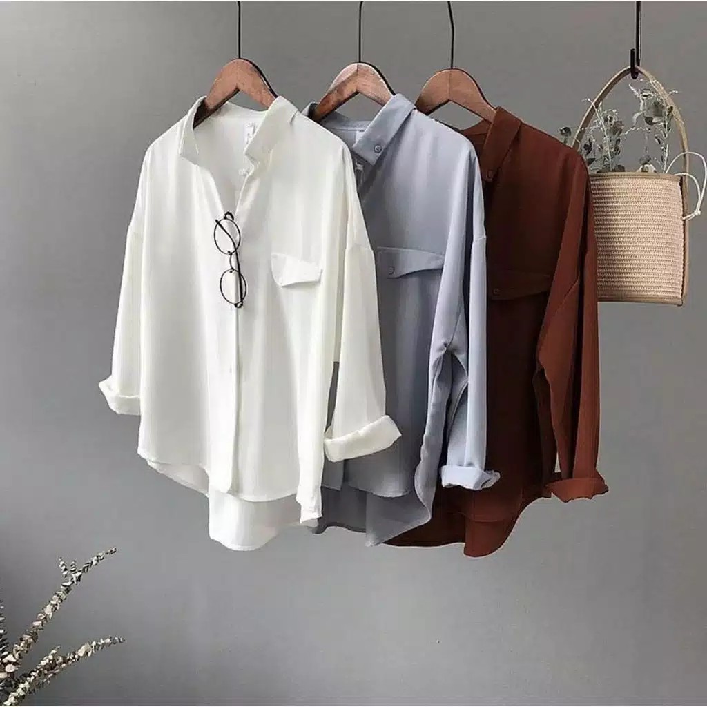 BISA COD / MADANIA TOP BAJU ATASAN KEMEJA WANITA / KEMEJA WANITA CASUAL POLOS JUMBO FORMAL IMPORT