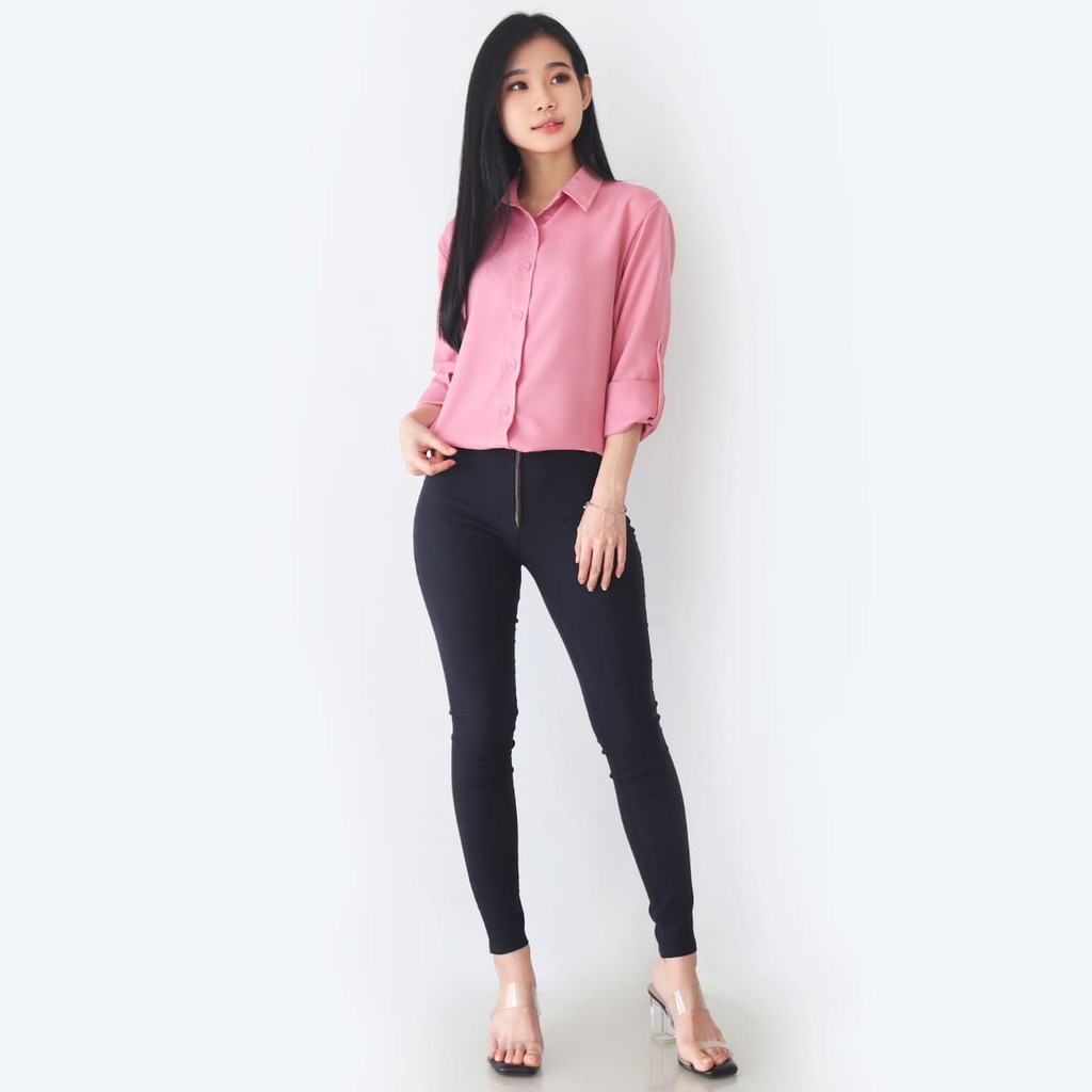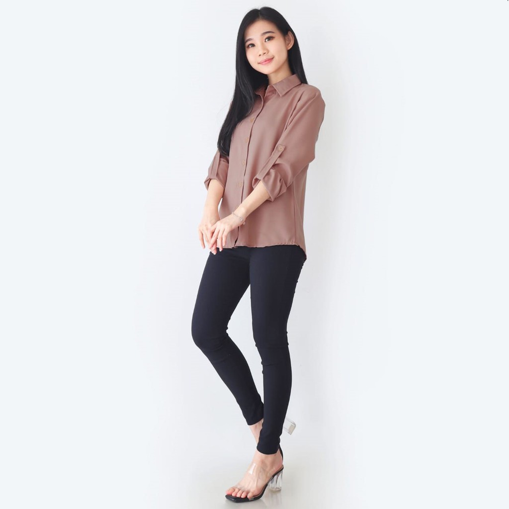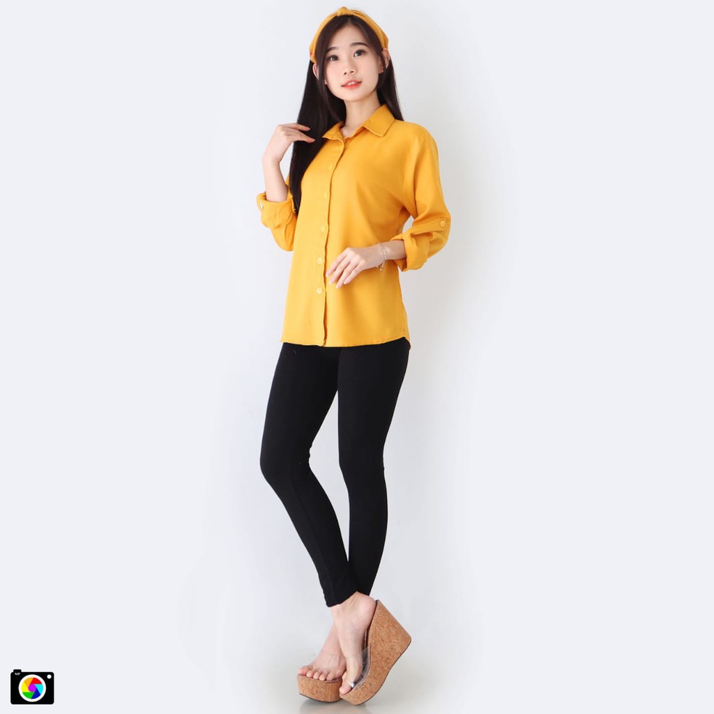 Aurel Kemeja Wanita Polos Basic Lengan Panjang Size =M - XXL