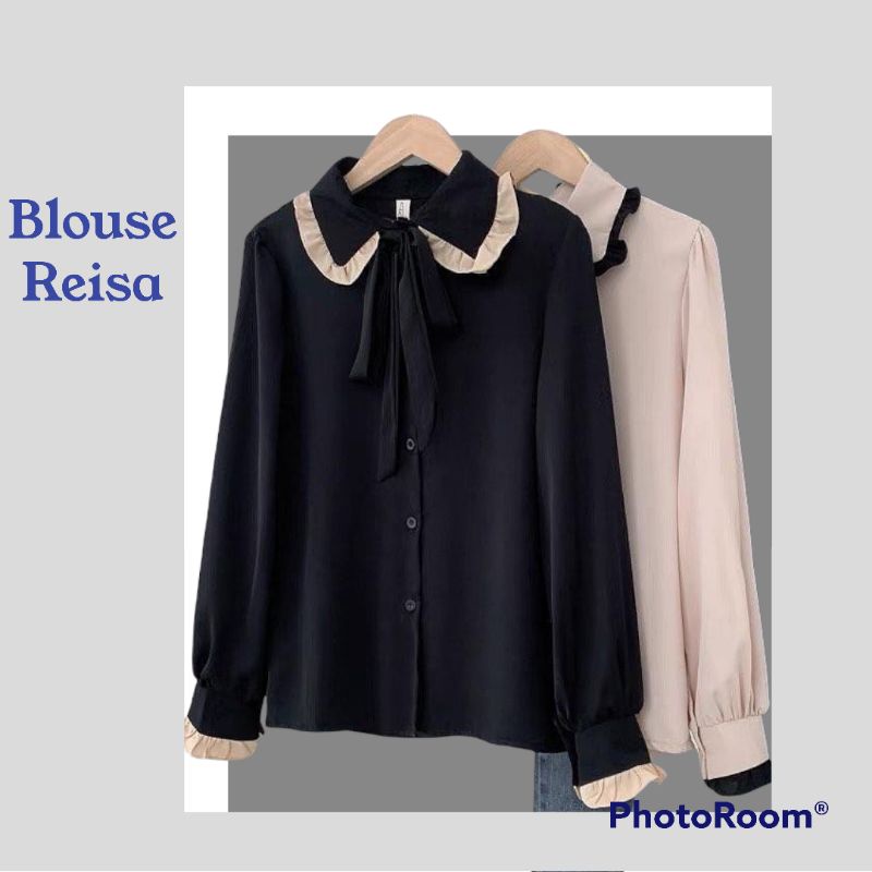 Reisa Baju Atasan Blouse Kemeja Wanita Casual Korean Style Kekinian Hitam Lengan Panjang Sisters Korea Import Polos Balon Murah Crop Terbaru Perempuan