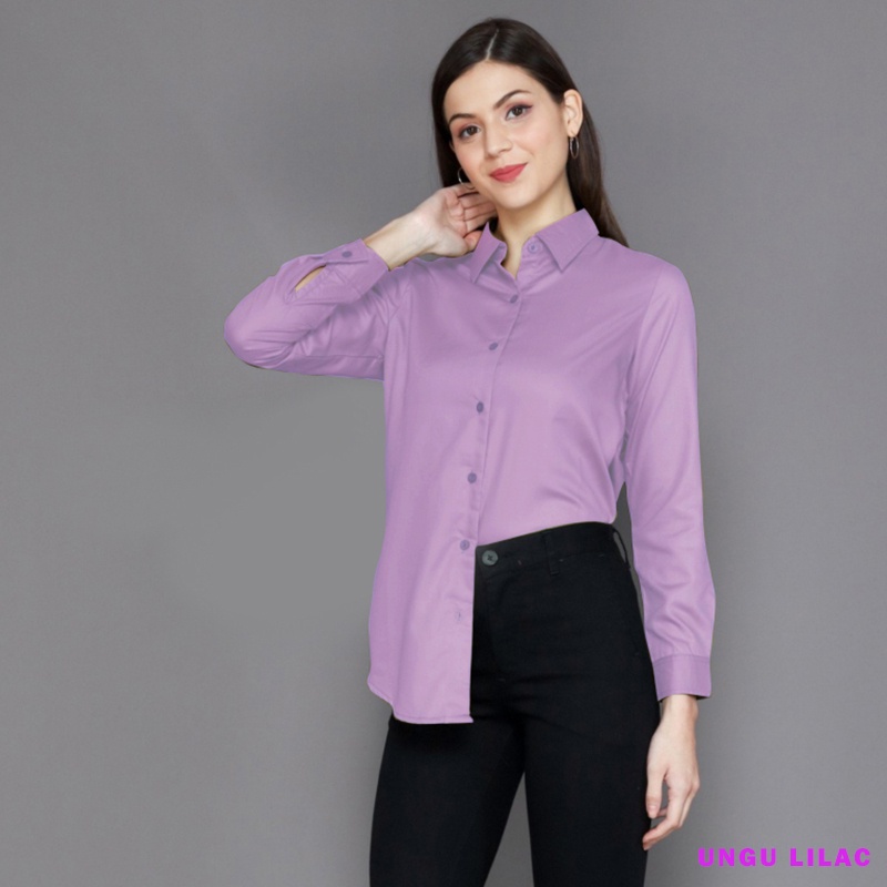 Harga baju kemeja wanita kerja kantoran lengan panjang casual import kekinian 2021 hem wanita polos