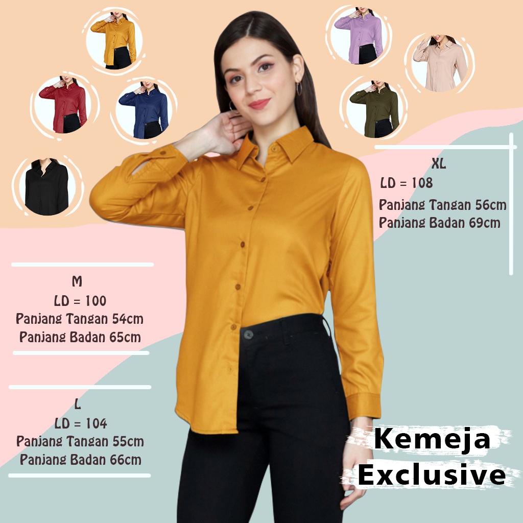 kemeja wanita polos lengan panjang basic kekinian hem cewek baju kantor slimfit simple terbaru murah