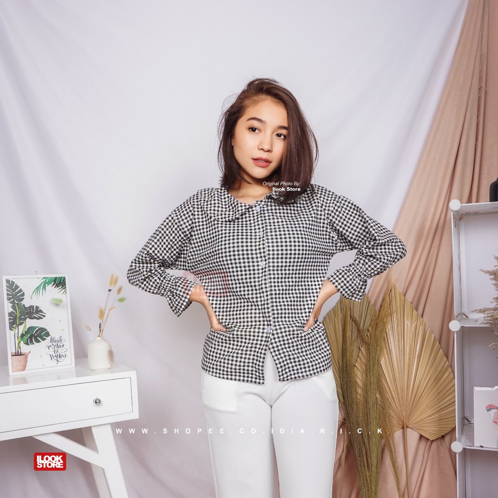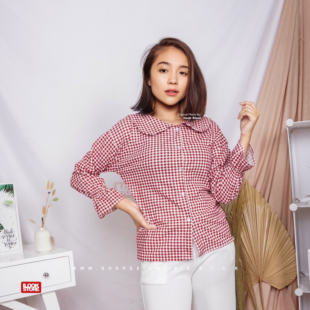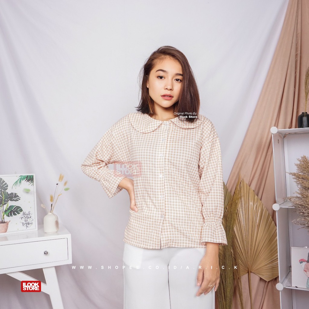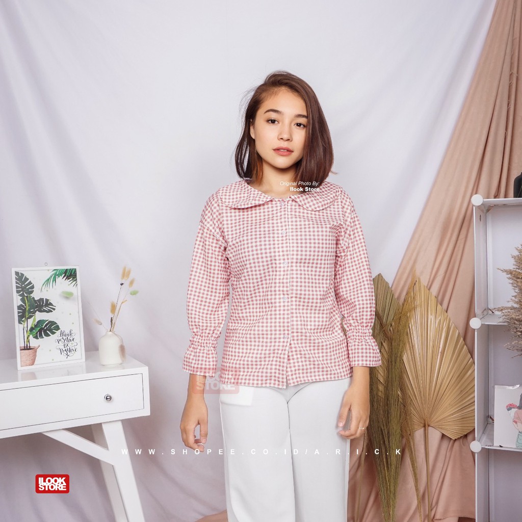 Harga ilook | Kemeja Rahel | Kemeja Wanita Motif Kotak Bahan Creap - Fit to L