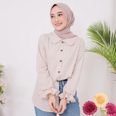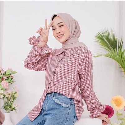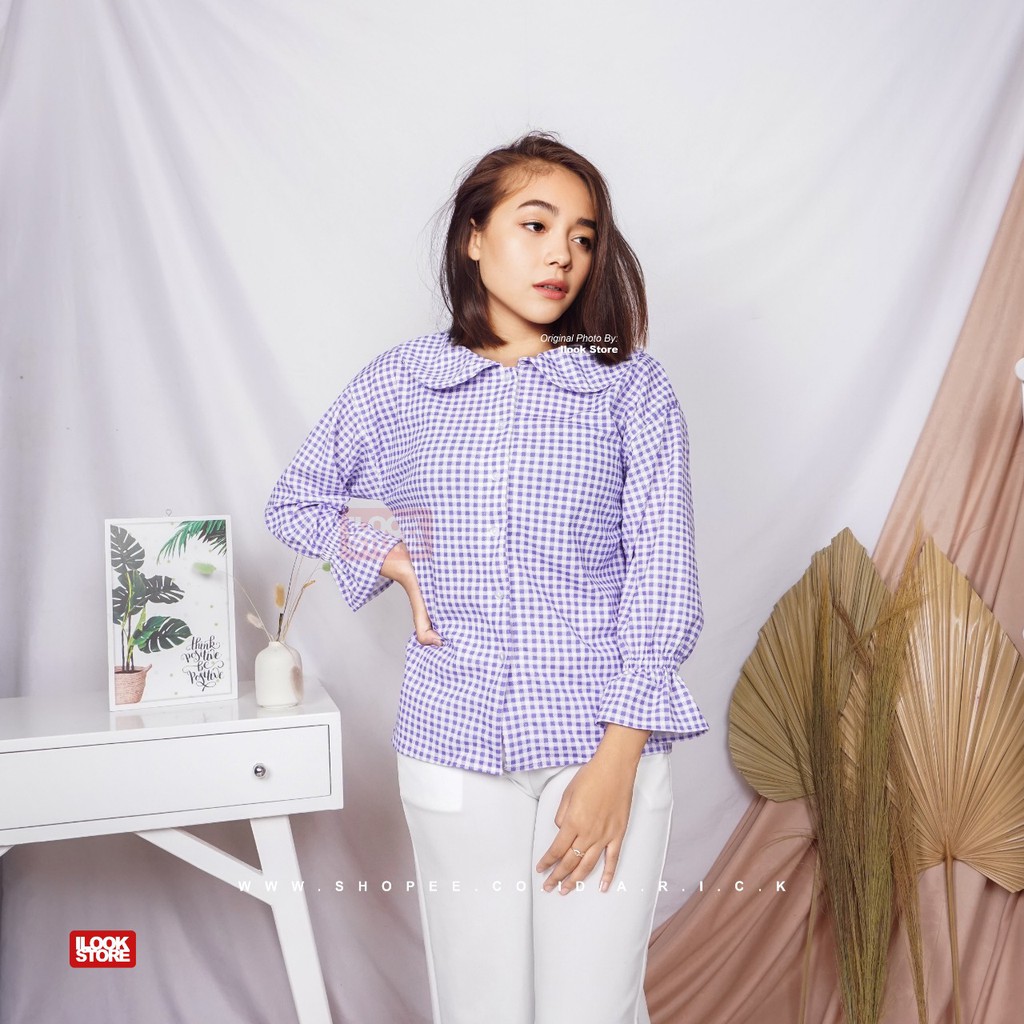 Alasan kenapa harus beli ilook | Kemeja Rahel | Kemeja Wanita Motif Kotak Bahan Creap - Fit to L sekarang