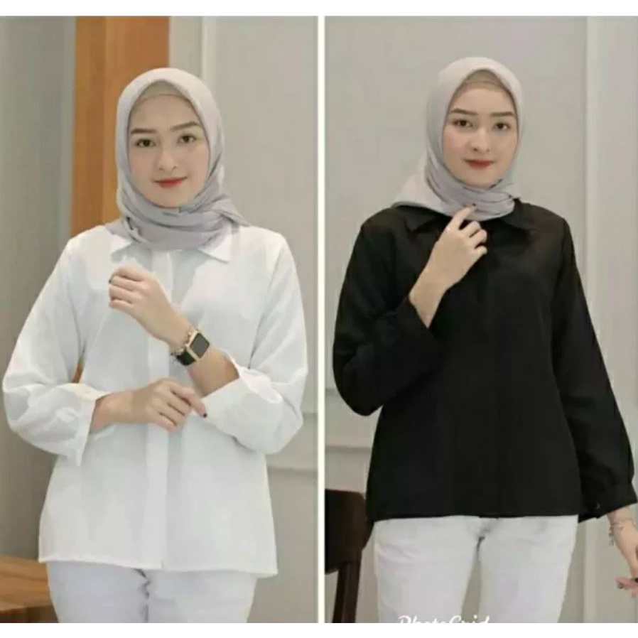 Kemeja wanita Putih Baju Kemeja Wanita Casual Hem Polos Cewek Kerja Kantoran Kuliah Kekinian Terbaru