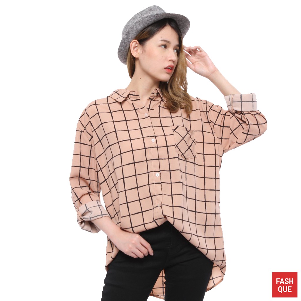 Kelebihan - Kelebihan membeli Kemeja Wanita Jumbo Casual Lengan Panjang Kotak Kotak Terbaru Murah Kekinian - 06177 di Toko ini