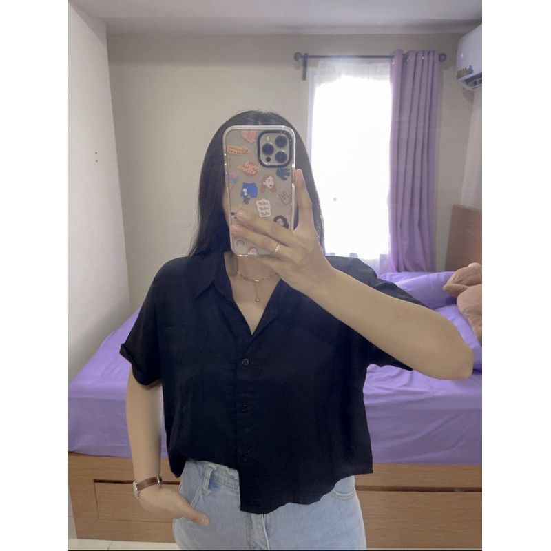 KEMEJA WANITA CROP TOP POLOS KATUN CROP SHIRT ORGANIK