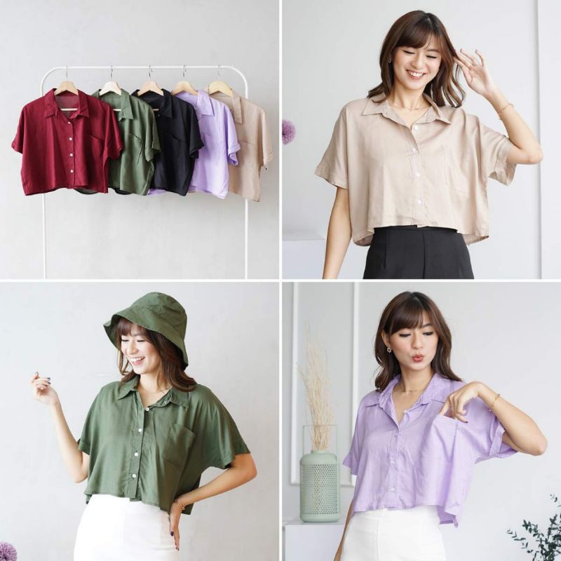 Oversized Rayon Crop Top Kemeja Wanita Casual Big Size Jumbo Polos Lengan Pendek