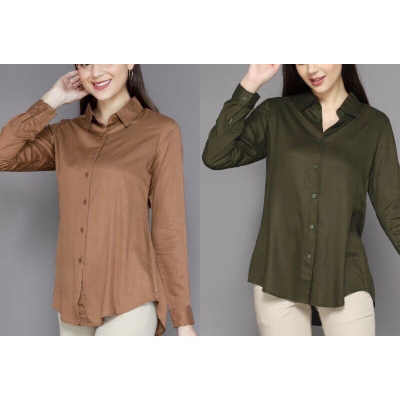 kemeja wanita polos rayon twill casual tangan skoder