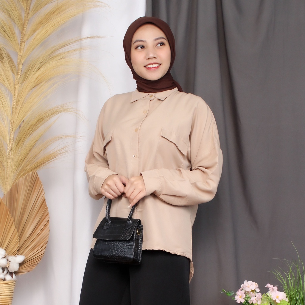 KEMEJA WANITA CASUAL KOREA - OXANA TOP COTTON PARIS - ATASAN WANITA LENGAN PANJANG MURAH <