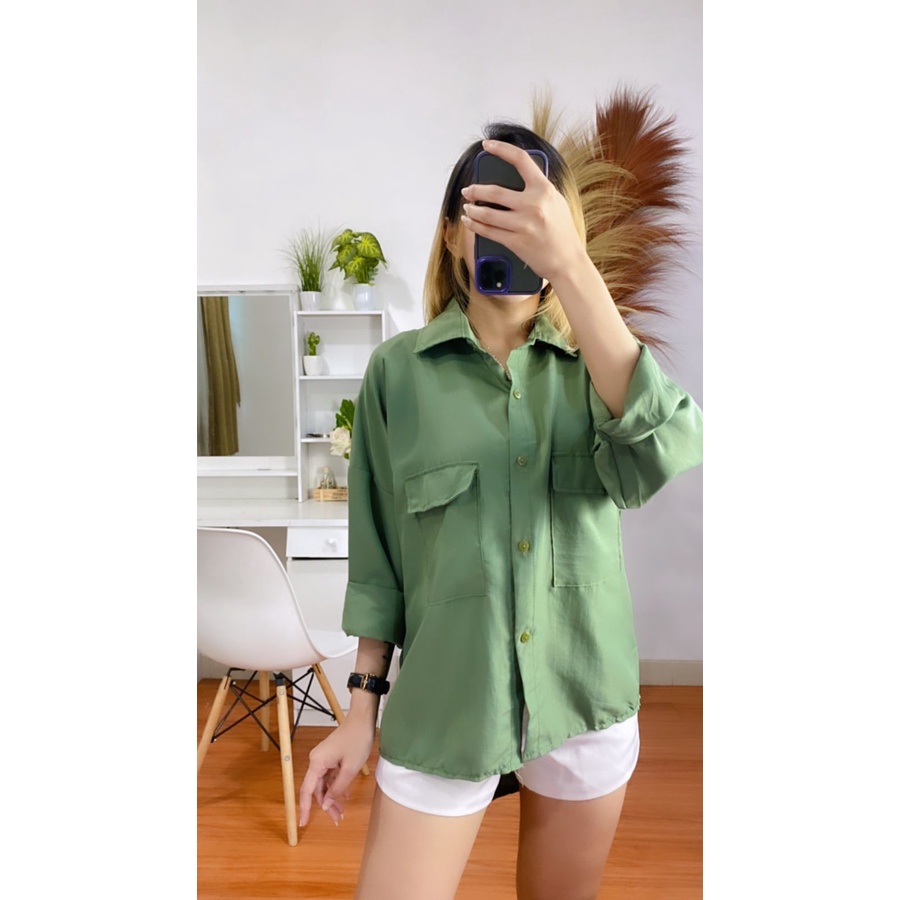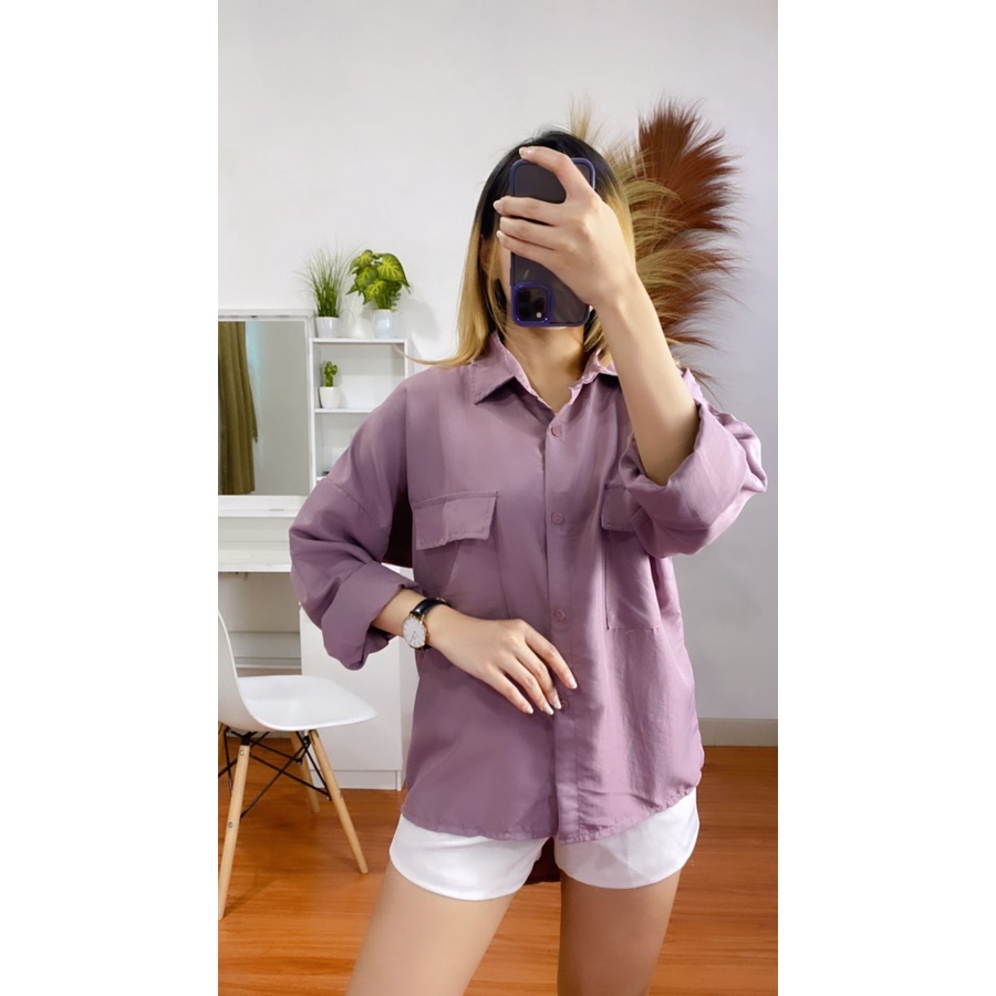 Kemeja wanita / Atasan Kemeja Wanita Kekinian / Lollie / Kemeja Wanita Polos Lengan Panjang