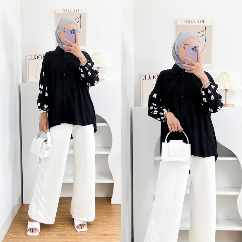 Harga ATASAN KEMEJA RAYON POLOS DAN MOTIF OVERSIZE LENGAN BALON BUSUI JUMBO WANITA