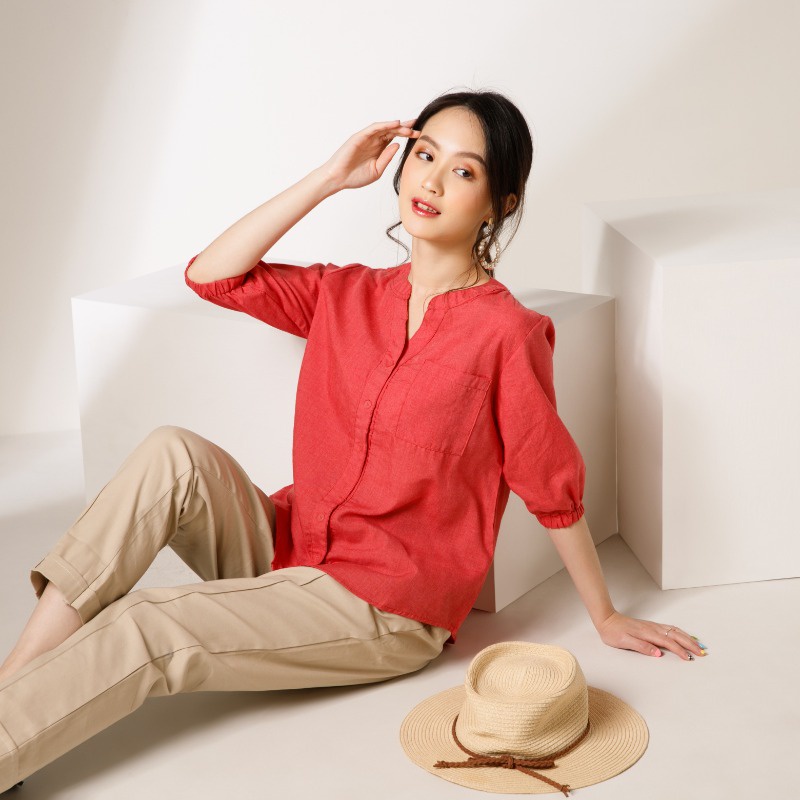 Sorabel - Hyorena Plain V-neck Women Blouse / Kemeja Wanita Polos Collar Neck Lengan 3/4