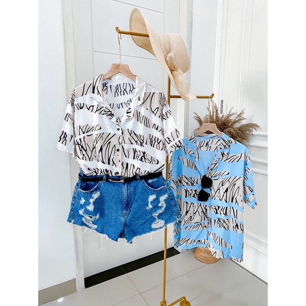 Double Lucky / Kemeja Rayon Pendek / Kemeja Wanita Rayon / Baju Atasan Wanita / Corak