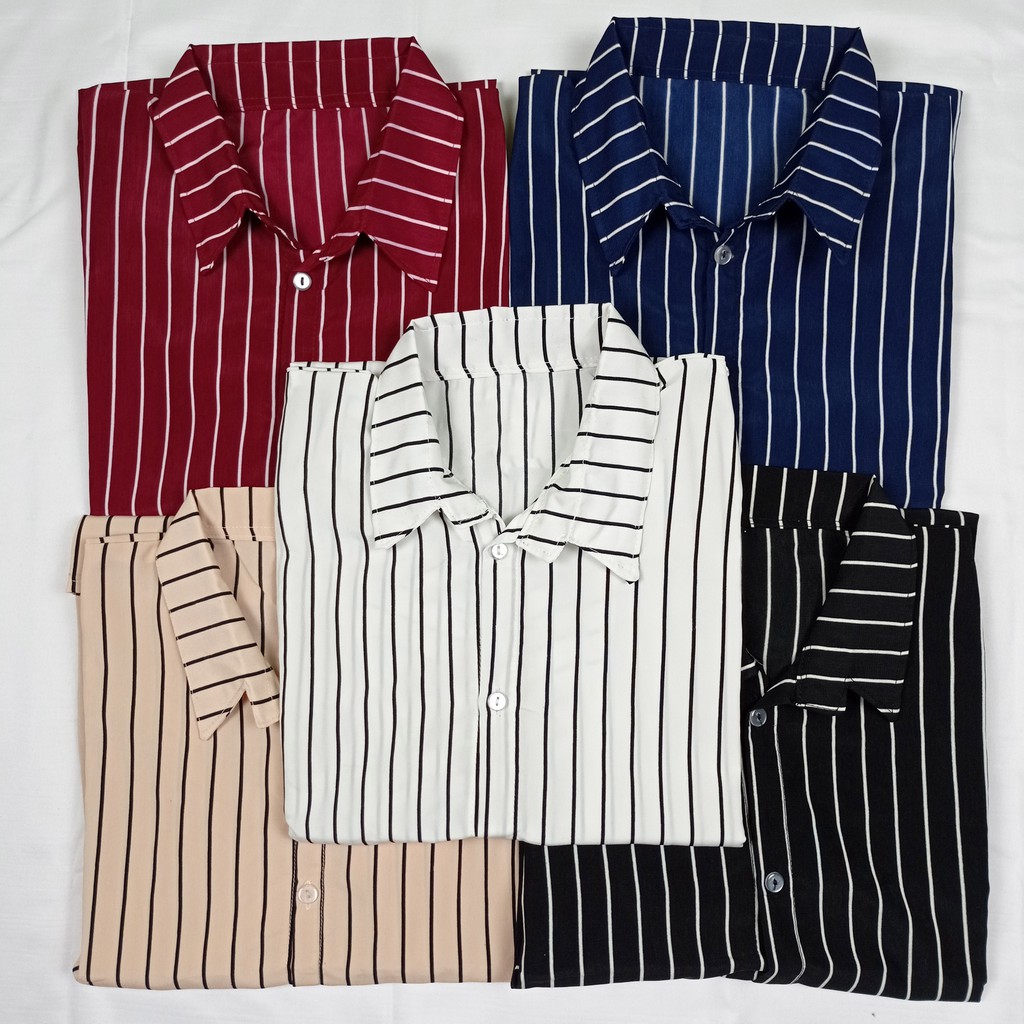 Kemeja Wanita Salur Atasan Blouse Monalisa Stripe Lengan Panjang Korean Style Motif Garis Garis Wolfis