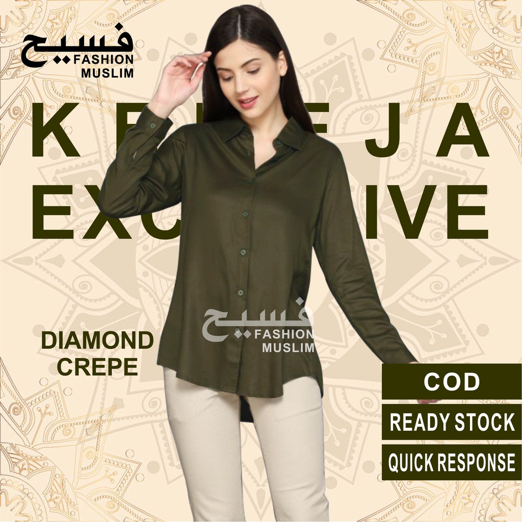 kemeja wanita lengan panjang polos basic kekinian hem cewek baju kantor slimfit simple terbaru murah