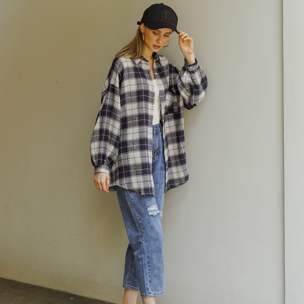 Kemeja Wanita Jumbo Lengan Panjang Polos Casual Oversize Terbaru Murah Kekinian - 0064