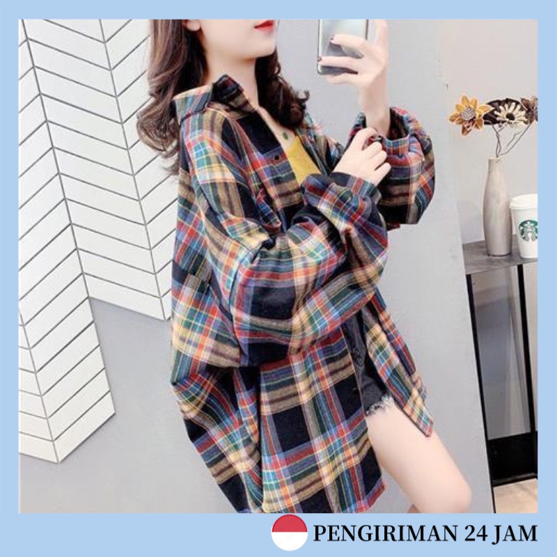 ICHI FLANEL / koreans style / kemeja flanel wanita / kemeja square terbaru / kemeja flanel termurah / ootd hijab