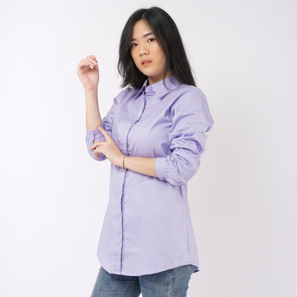 Kemeja Wanita Polos Lengan Panjang Slimfit - Ungu Muda - Aura Catalogue Slimfit Plain Shirt