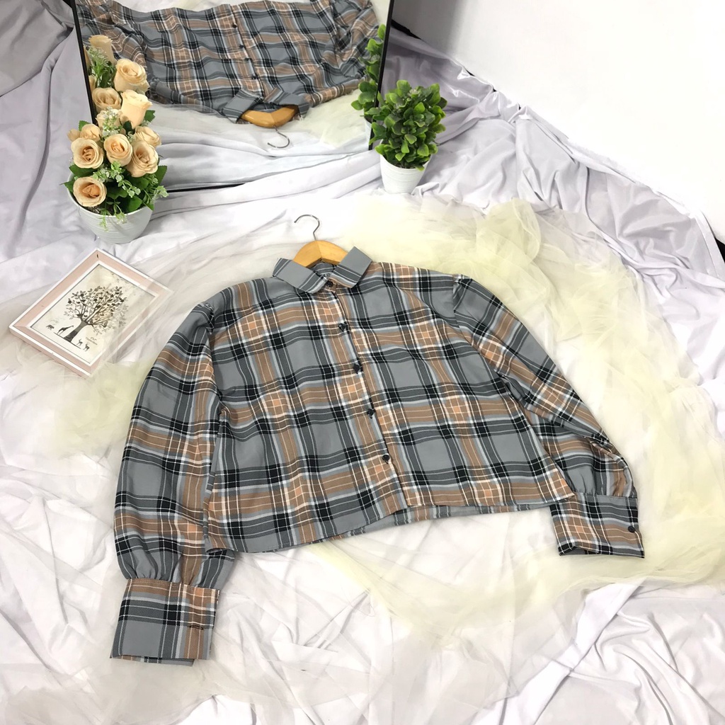 Harga BLOUSE/KEMEJA COD/Bayar ditempat/Gratis Ongkir || Blouse TARTAN LENGAN BALON MIZU KOREAN STYLE | KEMEJA FLANEL WANITA NUMMA/KEMEJA CROP LENGAN PANJANG TARTAN/NUMMA CROP PLANEL KEMEJA KOTAK KOTAK