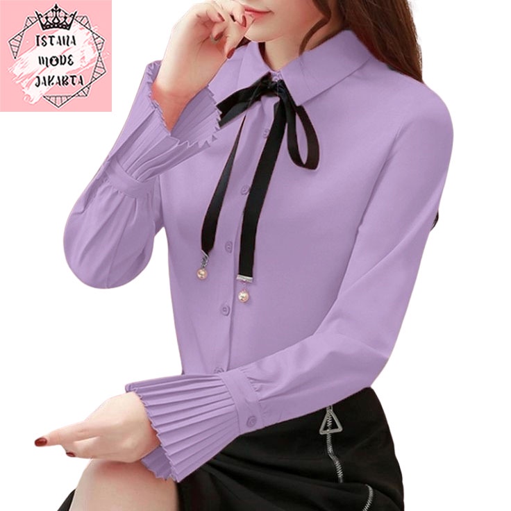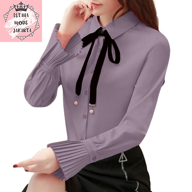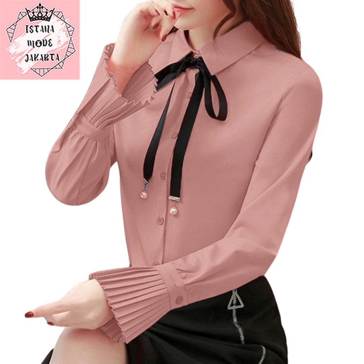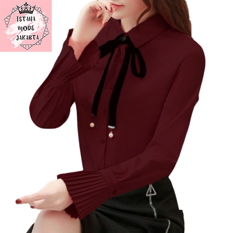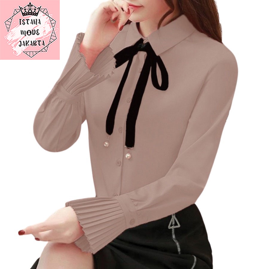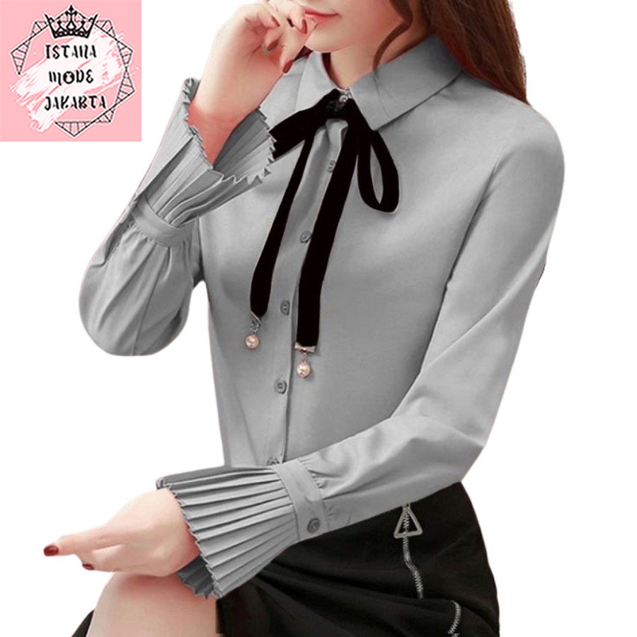 Harga ISTANA MODE JAKARTA Aura baju atasan wanita terbaru kemeja korean style kemeja wanita lengan panjang