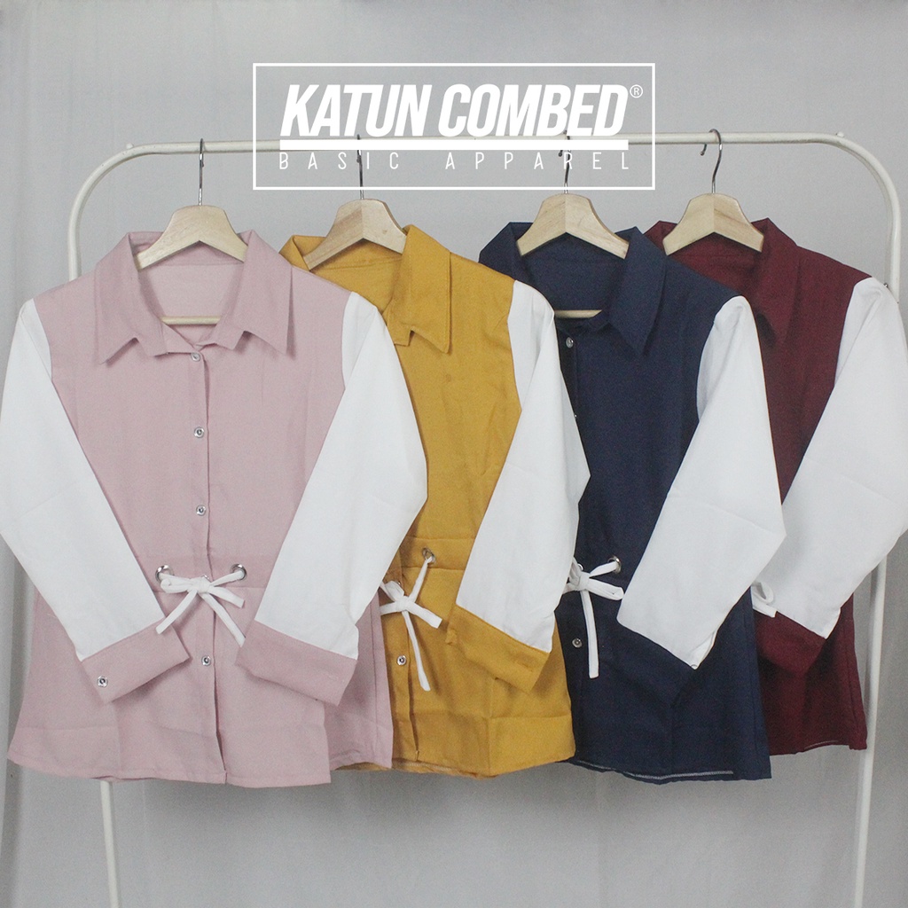 Kemeja Wanita Kombinasi Warna Lengan Panjang Model Korean Style
