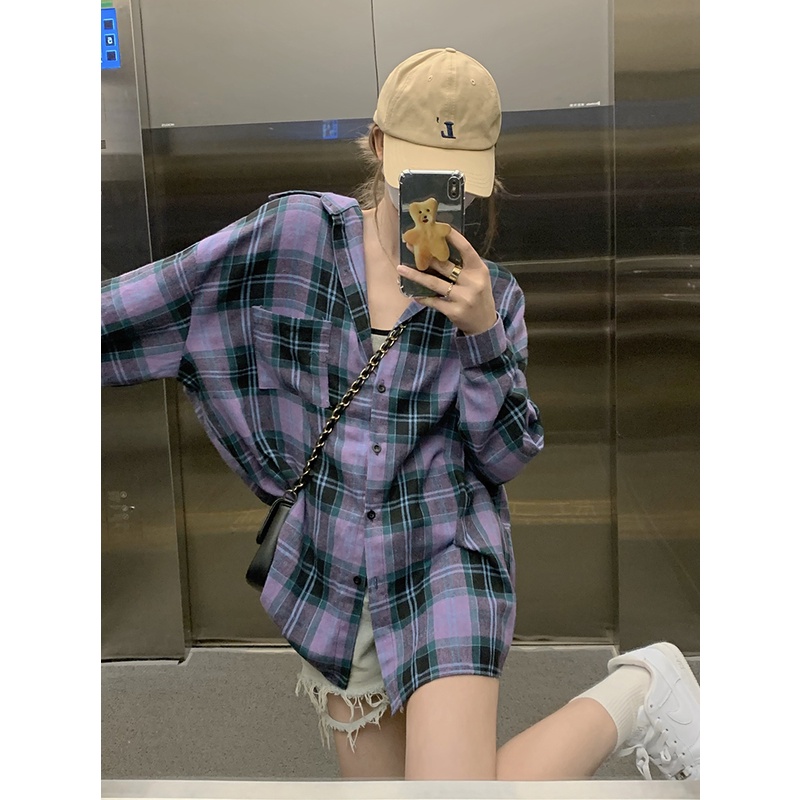 Kelebihan - Kelebihan membeli Kemeja flanel Kotak Kotak Kemeja Oversize/model Longgar Hitam Kemeja Wanita Casual/Kemeja di Toko ini