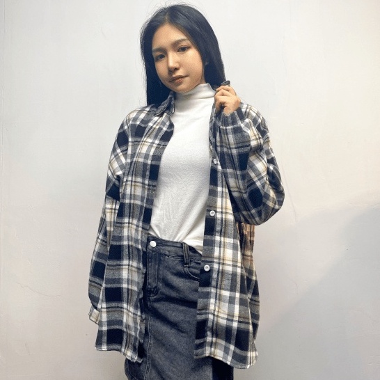 Alasan kenapa harus beli Kemeja flanel Kotak Kotak Kemeja Oversize/model Longgar Hitam Kemeja Wanita Casual/Kemeja sekarang