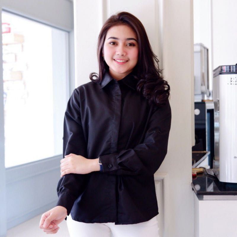 Kemeja Wanita Office Formal Polos Lengan Panjang Katun Stretch