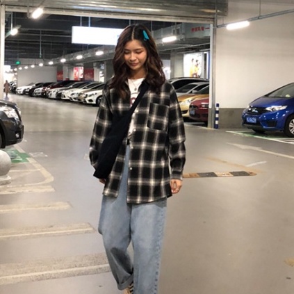 Alasan kenapa harus beli moseur.id Retro chic kotak-kotak longgar malas Hong Kong rasa mahasiswa kemeja wanita sekarang